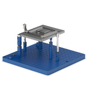 Das Spannsystem mit Schnellwechselmechanismus für taktiles Messen am Messplatz bzw. auf Koordinatenmessmaschinen. Mit Anschlussbolzen und Spannzapfen können die Bauelemente einfach miteinander verbunden werden. Mit einem einzigen Innensechskantschlüssel lässt sich die Vorrichtung auf der Grundplatte innerhalb von Sekunden umrüsten.