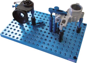 Das ALUMESS-Spannsystem ist ein äußerst flexibles und umfangreiches Baukastensystem zur Fixierung von Werkstücken auf Messmaschinen. Das Spannsystem basiert auf einer Lochplatte, auf der die verschiedenen Spannelemente, Spannvorrichtungen positioniert werden können. Diese Lochplatte wird auf die Messplatte der Messmaschine geschraubt.